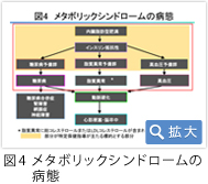 メタボは内臓脂肪型肥満によるインスリン抵抗性が高まり、脂質代謝、糖代謝異常と高血圧を呈する、いわゆる生活習慣病です。この生活習慣病とメタボ対策の国家的施策が2008年4月から施行されています(図4)。ここで注意が必要なのは脂質異常に、総コレステロールとLDLコレステロールが含まれていない点です。糖尿病や脂質異常、高血圧が確立した状態では薬剤介入が必要なことはいうまでもありません。従って、その前の糖尿病予備群、脂質異常予備群、高血圧予備群の生活改善が必要となるわけで、特定保健指導が標的とする部分です。